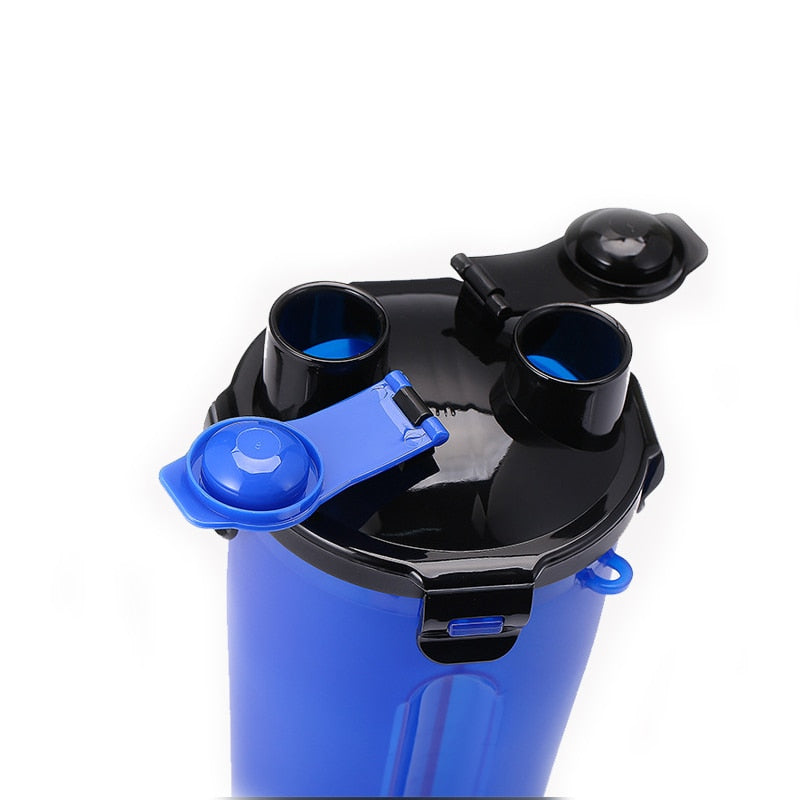 Esse Kit é 4 em 1 já que você terá espaço para armazenar água, comida e ainda dois potinhos dobráveis para servir seu pet! Tudo isso preso por dois ganchos que evitam que você perca ítens.